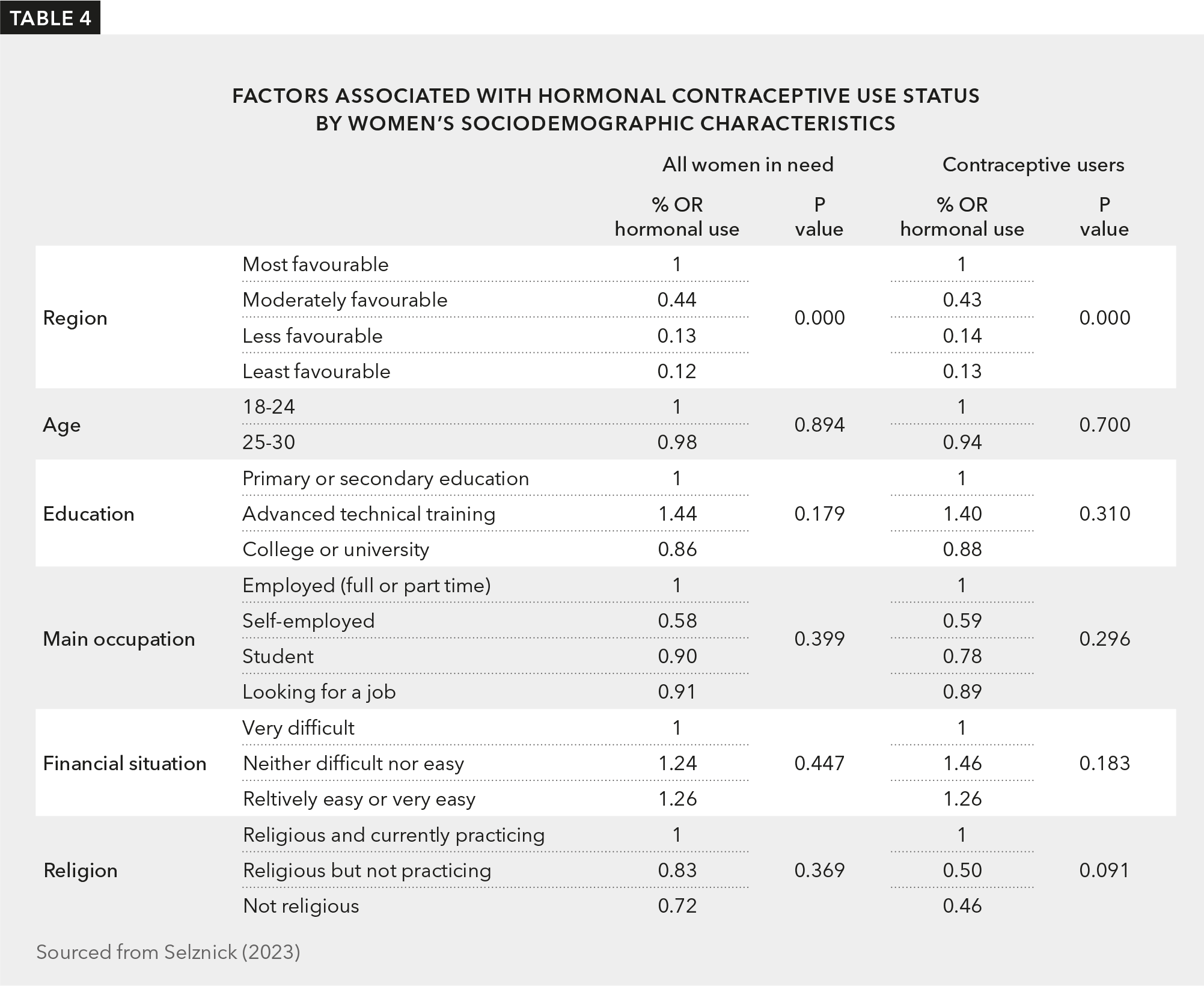 Respondents who were self-employed, looking for a job or in a difficult financial situation were less likely to use hormonal contraception.