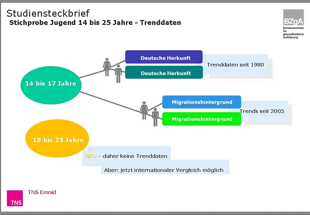 Die repräsentative Befragung knüpft an die Vorläuferstudien der BZgA zur Jugendsexualität aus den Jahren 1980 bis 2010 an. Ein Novum der aktuellen Studie ist die Ausweitung der Befragungsgruppe auf junge Erwachsene im Alter von 18 bis 25 Jahren. Schwerpunktthemen der Befragung sind Aufklärung in Schule und Elternhaus, erste sexuelle Erfahrungen, Verhütungswissen und Verhütungsverhalten.